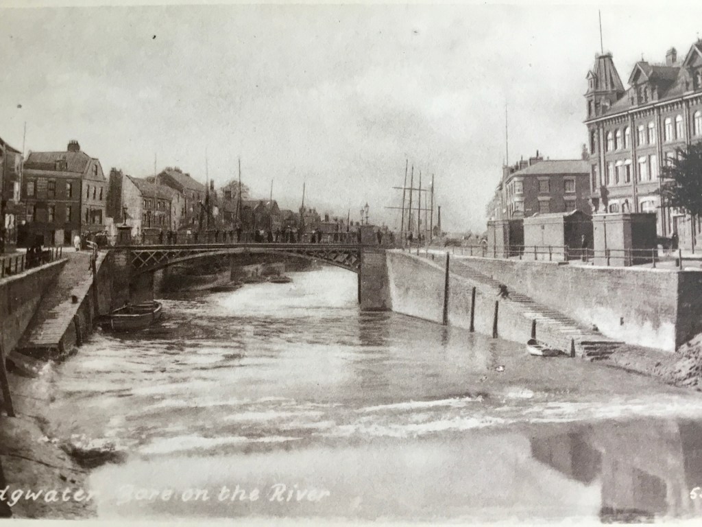 Bridgwater did decline as a port, in part due to the silting of the River Parrett, but it was a slow process. During my time living in Prince Edward Island, on the Canadian East Coast, I learned that it was Island timber, imported through the Port of Bridgwater, that was used for the railway ties on Brunel’s Great West Railway. There is another linkage with the Maritimes. The Bay of Fundy off the coast of Nova Scotia and New Brunswick, and the Bristol Channel, feature vast shallow bays which give rise to a tidal bore. I have never seen the one in Bridgwater (just the postcard below), but have seen it in Moncton, New Brunswick.